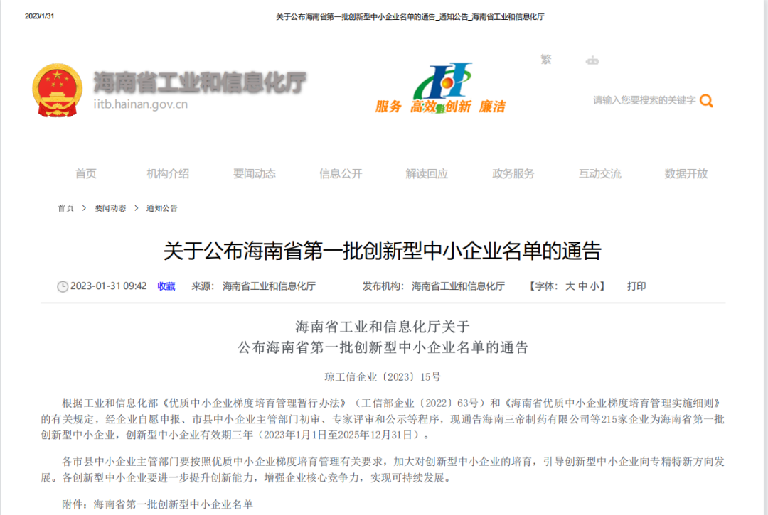 本次列入海南省第一批创新型中小企业名单的企业共计215家,海南省工业和信息化厅申办创新型中小企业目的为了加大对中小型企业的创新培育,引导创新型中小型企业向专精特新方向发展。进一步提升中小型企业创新能力,增强企业核心竞争力,实现可持续发展。
