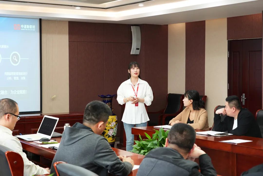接下来,商学院张振苹讲师针对蓝领城邦平台的落地和使用,为参会人员讲解了如何创建公司数字架构,数字岗位职责及操作权限。